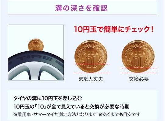 重要: 走行距離が少なくても、ゴムは経年劣化します。年式の古いタイヤは溝が残っていても交換が必要です。